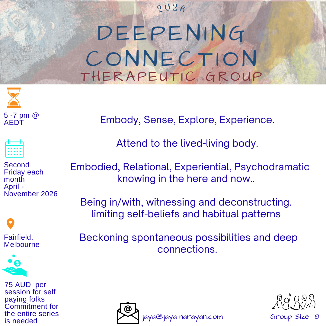 ^ Embodied- Psychodrama- creative -experiential- professional development workshop(s) customised for your context.