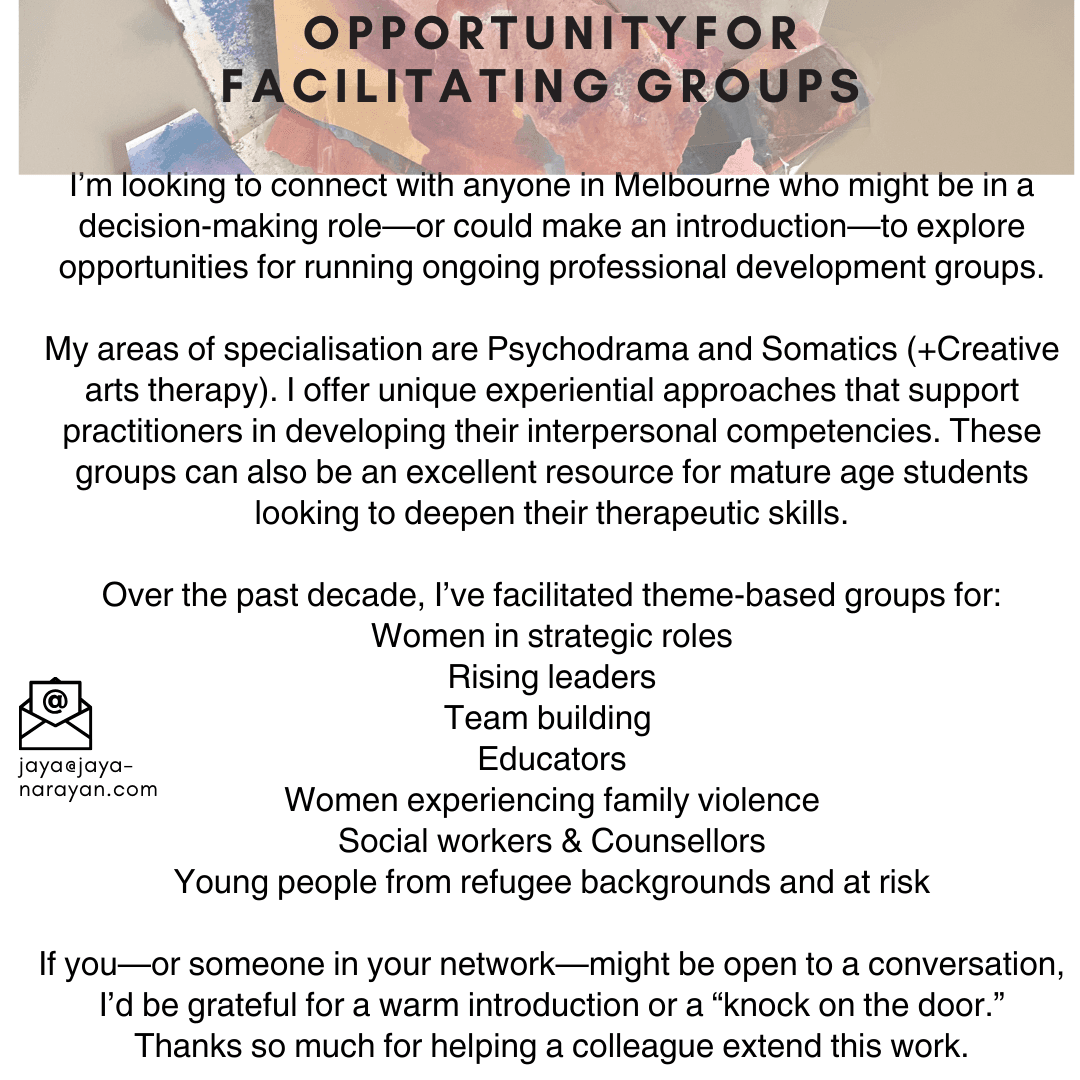 A new intervention that I believe is crucial to support individuals with lived experiences of complexity & adversity. I would like to think of it as a bridge between the real world [our families, work, and friends] and the inner world. In Psychodrama, we call it role training. My hope with the lab is transitioning clients to lesser 1-1 support over a period.